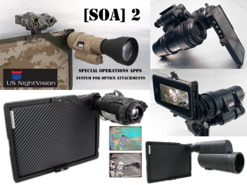 Esta semana Special Operations Apps presentó una serie de adaptadores de lentes y ópticas de grado militar para iPhone o iPad. Al utilizar estos adaptadores en conjunto con ópticas y apps, los soldados podrán geo-etiquetar objetivos, ver imágenes en visión nocturna, infra rojo, y capturar de video entre otras cosas.